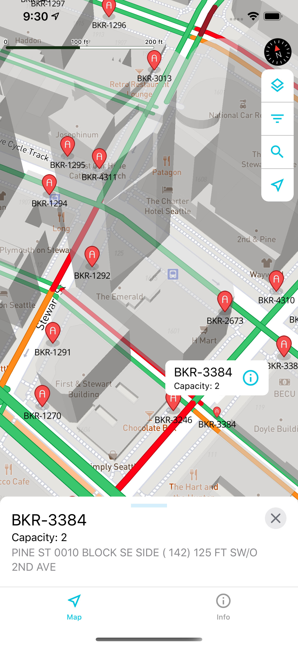 Rack Explorer has information on thousands of bike racks owned and maintained by Seattle Department of Transportation. As you bike around Seattle, you can easily find out if there is a bike rack near you or your destination! Rack data is updated every few weeks, as new information becomes available.